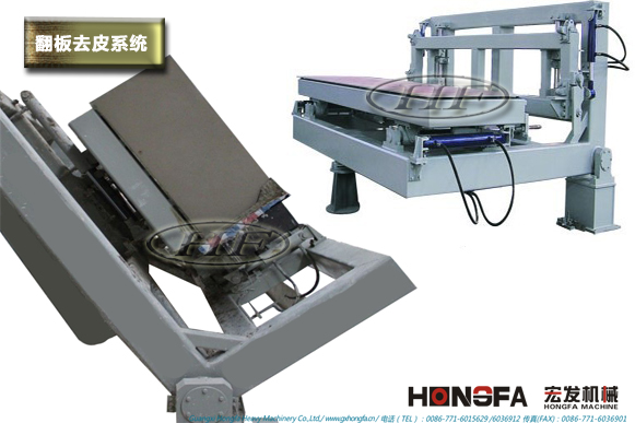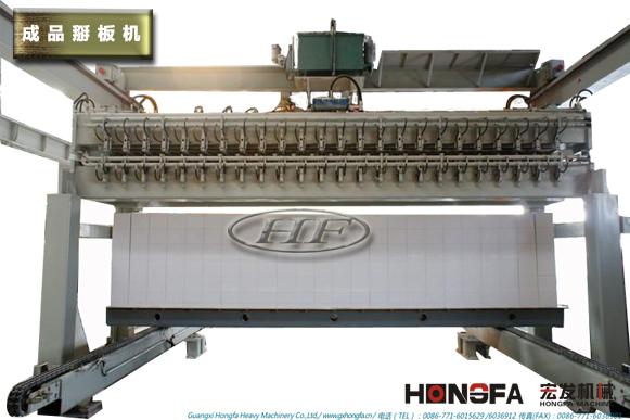 坯体在切割后,翻转台把坯体翻转90度,以去除底部废料,从而提高废品的利用率。